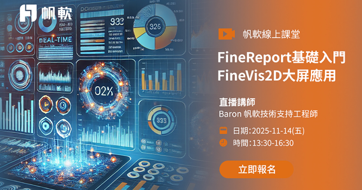 ineReport 不僅提供行業資料平台的建設方案,更提供從資料的清洗整理,到指標的梳理、邏輯的搭建,一直到資料的解讀一系列完整的資料的應用方案。透過此次免費線上直播課,我們將帶您快速入門,教您從零開始設計一張美觀實用的資料報表,親自體驗用 FineReport 敏捷整合多源資料庫,跨裝置完美展現,搭建統一的報表平台的過程,由此助力您的企業發掘資料金礦!